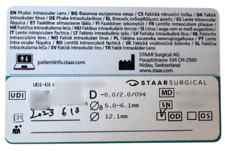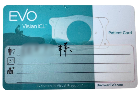 手術が完了すると、ICLを挿入した証明としてPatient Card(患者カード) が渡されます↓