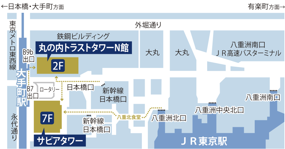 アイクリニック東京は、サピアタワーと丸の内トラストタワーN館の2つあり、両方とも東京駅から徒歩3分の好立地にあります↓